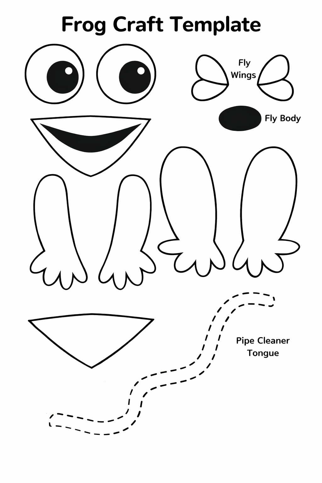 This craft can be made by cutting the shapes by hand, or you can create simple printable templates for the frog legs, eyes, mouth, and fly to make classroom prep easier.