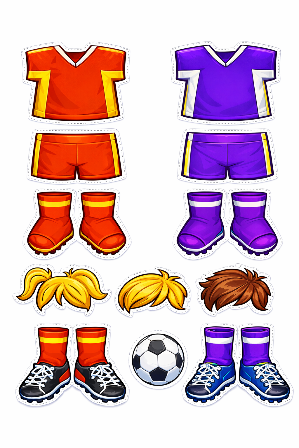 Once your doll is assembled, cut out the soccer clothes and glue them in place. Now your soccer player is ready to hit the field.