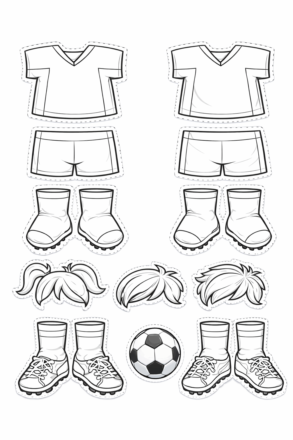 Click on a pattern to open it in a new window to print in the correct size. Print as many as you need to build your ultimate soccer paper doll team.