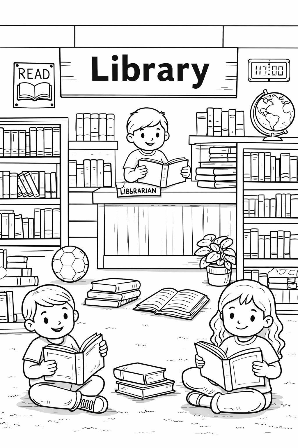 Turn this printable into a simple library lesson by asking children to talk about their favorite book or draw a picture of a library they would like to visit.