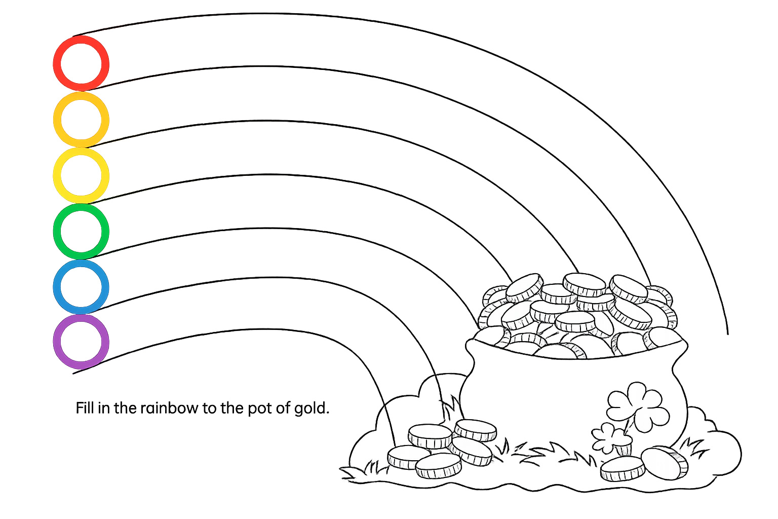 - Have the children color the pot of gold and the rest of the printable.